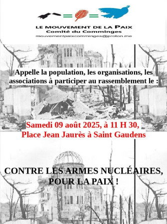 Il y a 80 ans, Hiroshima et Nagasaki / Rassemblement samedi 9 août 2025 à 11 h 30 à Saint-Gaudens