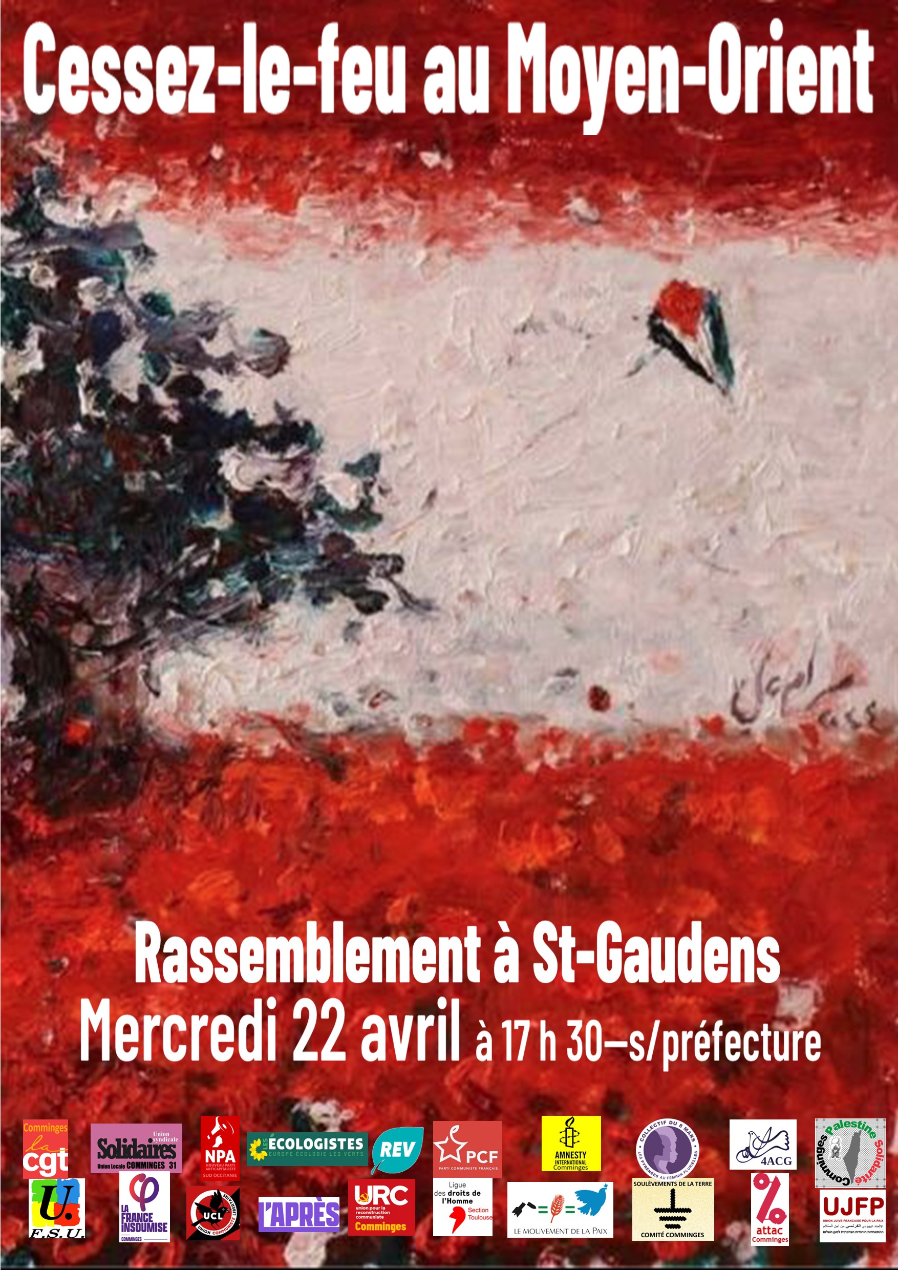 Mercredi 22 avril à Saint-Gaudens / Rassemblement pour un cessez-le-feu au Moyen-Orient