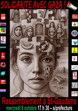 Mercredi 8 octobre / Solidarité avec Gaza : rassemblement à Saint-Gaudens