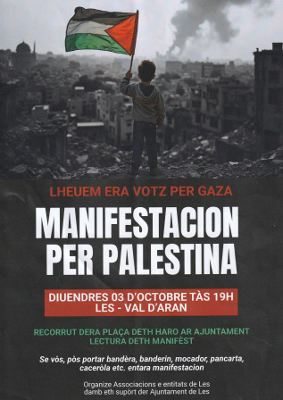 Vendredi 3 octobre / "MANIFESTACION PER LA PALESTINA" à Les (Val d'Aran)