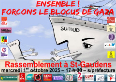 Flottille Sumud : soyons vigilants ! En cas d'attaque grave, retrouvons-nous le soir même (18 h) devant la sous-préfecture ! Suivre la flottille : https://globalsumudflotilla.org/tracker/ Au Régent : "Put your soul on your hand and walk" Les horaires ici :...